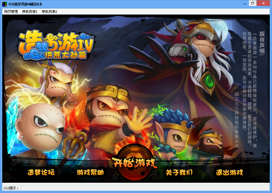 造梦西游4小U辅助是造梦西游4游戏中的一款辅助工具。该工具小巧且功能强大,拥有小怪爆率修改、僧衣改、木铲改等等功能,满足游戏玩家的功能需求,有需要的可以下载哦。