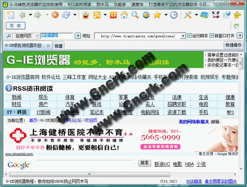 G-IE绿色浏览器特别增加脚本过滤功能,放心全上网,再也不怕木马病毒了,即使不小心打开了木马网页也不用害怕中病毒。