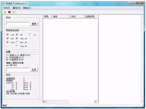 主要功能 1. 8种顶级域名whois信息批量查询,速度很快 2. 字母,数字模糊组合生成域名 3. 支持待查询域名列表导入 4. 未注册域名列表导出