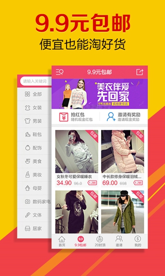 特价会 v1.4 安卓版 特价会精选折扣优惠宝贝,超低折扣9块9包邮,20元封顶抢好精品好货,特价购买宝贝天天抢红包!