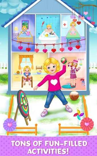在5个不同地点尽情享受10种交互式关爱活动吧–地点包括厨房、浴室、卧室、诊所以及游乐园!和艾玛一起去游乐园!你们可以玩富有创意的游戏,如爆破气球和美味蛋糕供应店!你也可以为艾玛穿衣打扮!这是你成为最好父母的机会哦!