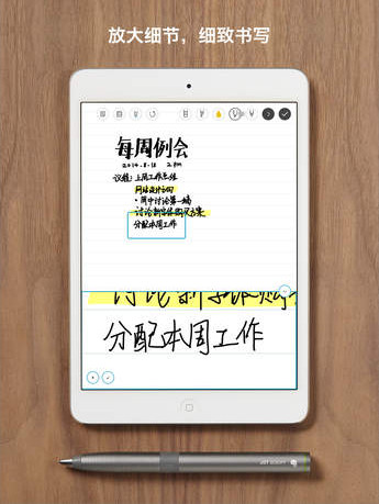 墨笔软件如其名,书写时笔迹和绘画如同中性墨水一般流畅顺滑,书写视觉和手感都十分逼真。值得热爱书写的朋友体验一下。因为收入了印象笔记旗下,所以增加了 Evernote 系列方便快捷的分享同步功能,只要创建一个账号,以后就能在账号下使用印象笔记系列产品,实现即时云端同步,可以在其他任何一台设备上保存、查看、编辑自己的笔记内容。相较其他笔记本应用,《Penultimate》更专注于其书写的功能,因此没有那么多花哨的选项,但是从学生党、上班族、写作者等用户群的要求来说,简单便利,还原手写,这样已经足够满足需要了。《Penultimate》4.0 的软件界面比以前稍有调整,不过依旧以简洁方便为主。模拟真实笔记本的主界面,点击一下就能打开。