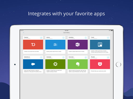 保存电子邮件到 Wunderlist、Todoist、Evernote、OneNote、Trello、Zendesk、Salesforce.com、Asana、Instapaper、OmniFocus 和更多其他应用。