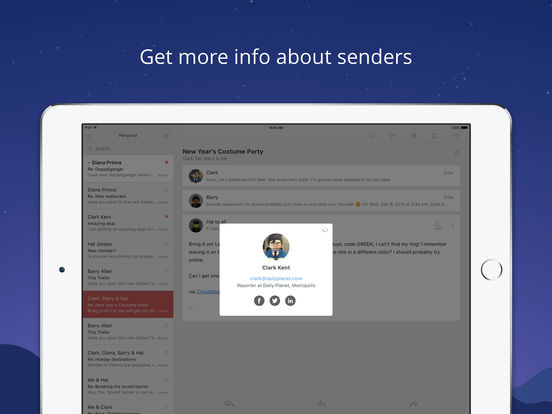它最大的亮点是拥有强大的搜索功能,可以搜索到邮件标题、正文、甚至是附件名称里面的关键字。对于拥有大量邮件,经常需要搜索的朋友来说这是非常实用的。CloudMagic目前可以支持Gmail、iCloud、GoogleApps企业邮箱、微软Exchange、Yahoo、Outlook和IMAP协议的邮箱,即便国内的QQ邮箱、163等都能通过IMAP协议收发,支持相当全面!基本可以一个客户端搞定你的所有邮箱。