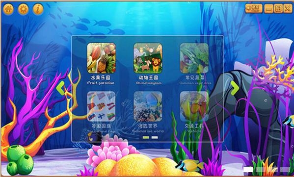 软件全部采用中英文双语结构,让小朋友们,直接进行双语学习。