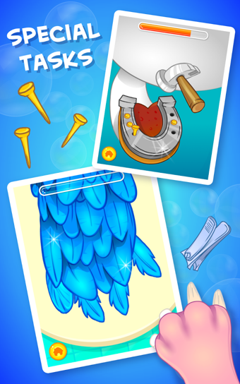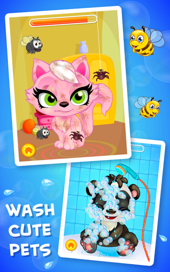 与7只可爱的宠物相识并给他们美容:毛绒绒的猫、忠诚的狗、慢吞吞的乌龟、活泼的兔子、疯狂的鹦鹉、贪玩的小马和可爱的大熊猫。在这款游戏中,孩子们可以照顾小动物,测试他们是否适合从事这个工作!小宠物们热爱大自然、森林和灌木丛,他们可以在这里玩捉迷藏,互相追逐。宠物们和他们可爱的朋友们一起漫游,现在他们的身上脏兮兮、乱糟糟的。通过你的美容打扮,迅速帮助他们恢复整洁。
