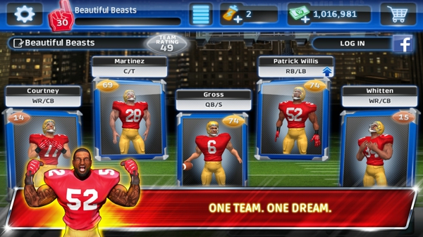 足球的抢断机器帕特里克·威利斯的工作他的魔术在防守和进攻!激活帕特里克LB愿景统治精确。