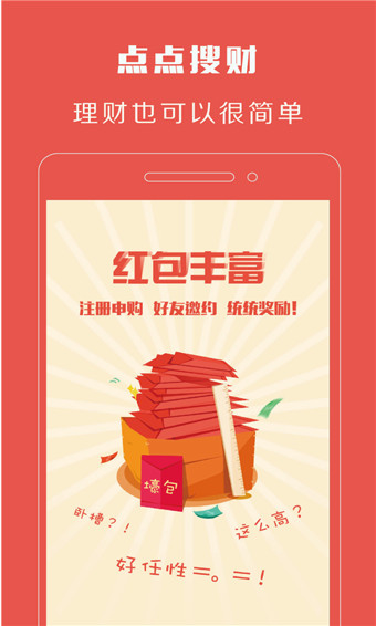 【首次购买理财产品立返20元现金可提现红包】 所有新用户下载点点搜财,首次申购理财产品,即可获得20元现金红包奖励!奖励将发放在您的账户余额内。【新用户独享】即日起新用户首次购买可独享具有超高收益的新手标产品。