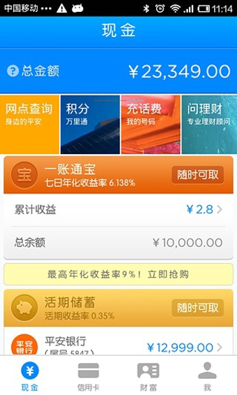 1、智能钱包全新上线,信用卡还款,车违章缴费,水电煤缴费全覆盖!钱包余额随存随取,还可坐享收益,灵活赚钱你做主。