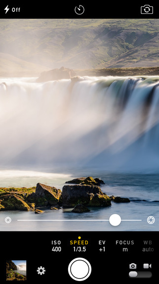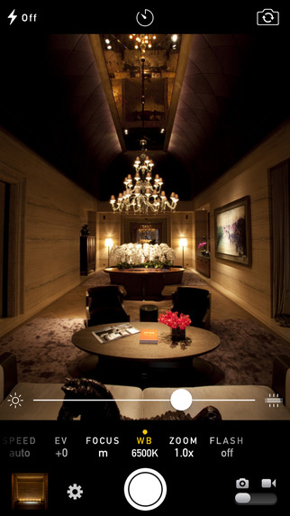 Manual–Custom exposure camera的操作页面十分简洁,简洁的菜单分别可以设置拍照的快门速度、感光度以及合焦位置等等,上方则可以控制闪光灯、白平衡等进阶参数。另外该软件还为用户提供了简易直方图、EXIF信息查看器和辅助构图网格,可以让专业级用户在使用手机拍照时不仅能获得更好的拍摄体验,还能得到更棒的照片。