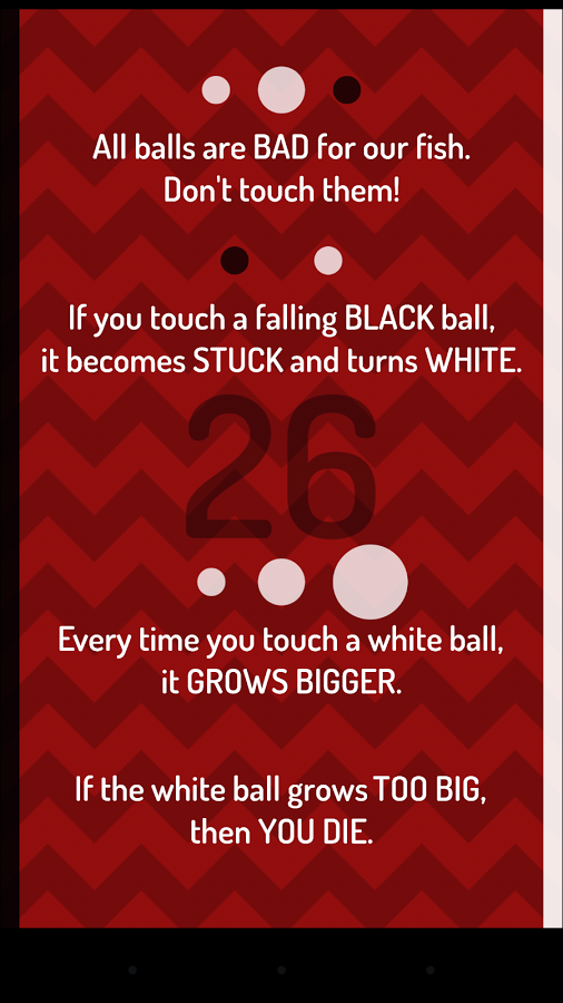 别让鱼死了安卓版游戏中让你的鱼躲避黑色的泡泡。 如果黑泡泡在被碰到之后就会变成白泡泡,并在后续接触中进一步变大,最终让你的小鱼死掉!通过点击屏幕就能让你的小鱼弹跳。