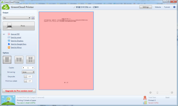 打开任意文档,选择打印,且打印机设置为GreenCloud Printer,在弹出的打印界面中点击Upgrade to Pro version now,然后再输入内附的解码码即可解锁