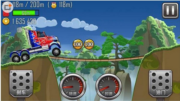 1、玩家点击油门以及刹车,可以控制赛车的运行。2、其次玩家需要注意上下坡的角度问题,否则很容易因为重力翻车噢。