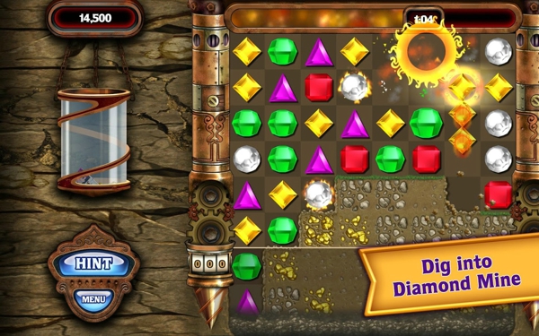 《EA宝石迷阵 Bejeweled 》是一款在多个平台上流行的游戏,在各个平台上有超过五亿的下载量,现在它也登陆Android平台了。Bejeweled是由疯狂足球的开发商EA开发的。Bejeweled的玩法和钻石迷情是一样的,玩家需要交换相邻两颗宝石的位置,让三颗或三颗以上同样颜色的宝石处于同一水平线上,即可消除掉颜色相同的宝石。