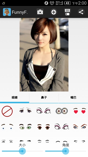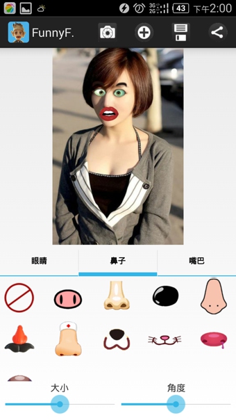 FunnyFace(趣味拼脸) 是一款非常有趣的基于面部识别的拼脸软件,即使你不会ps,也可以轻松制作你的专属搞笑卡通形象。FunnyFace里有多种眼睛,眼镜,鼻子,嘴巴,用户可以极速生成专属自己的搞笑图片,还可以分享给朋友们或者设置成社交网络头像。趣味拼脸,让我们一起摧毁这个看脸的世界吧!