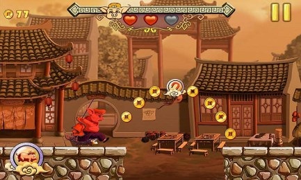 猪八戒为追到媳妇一路奔跑起来,不仅要拾取道路中的金币,还有跳跃各种障碍和陷阱。