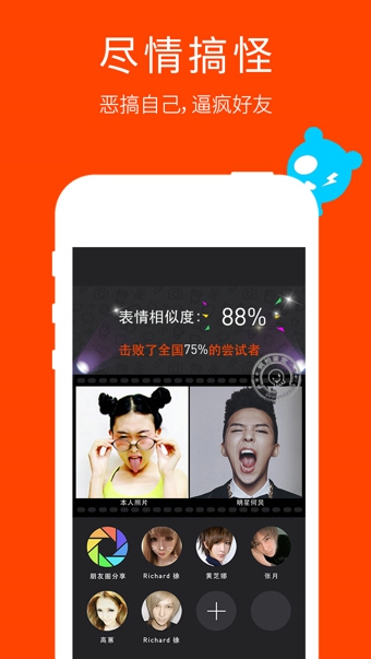 还有一大波逗比的明星表情等你模仿。把傲娇的相似度发给朋友,挖掘身边更多的逗比好友。