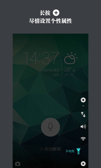 1、真人萝莉音接受、确认、反馈语音指令;2、锁屏界面漂亮得超乎想象!背景可以自定义咯~