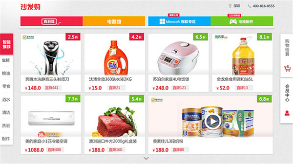 沙发购是基于电视端的购物平台,专注开发电视购物3年,全新的购物界面、可支持货到付款也可在线商品过十万,目前国内最领先,市场占有率第一的互联网电视购物平台。商品种类全面,与国内多平台合作(如京东商城,顺丰优选等),上万商品,涵盖生鲜食品,粮油干货,家庭日用,数码家电等!发货快捷,正品保障,七天无理由退换货,支持货到付款!支持支付宝二维码、微信等第三方便捷支付。是居家电视购物的理想平台!