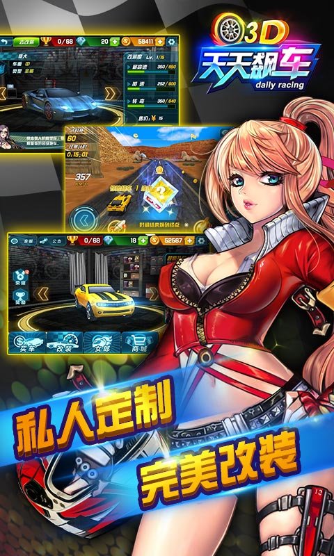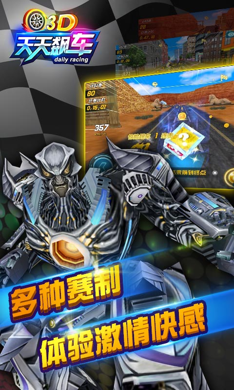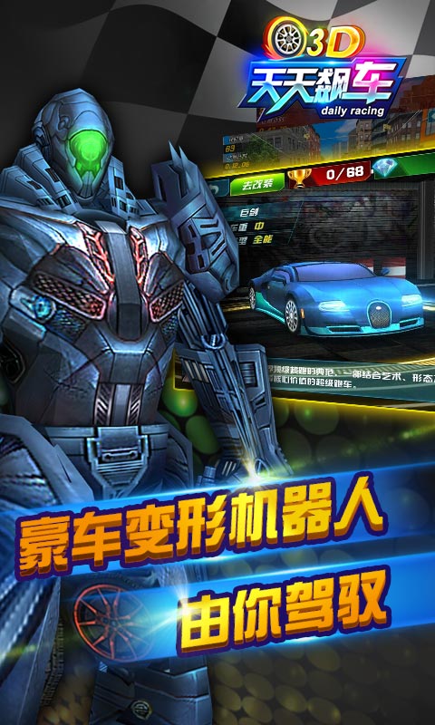 《3D天天飙车2》是一款操控简单,竞技性极强的3D赛车游戏。 游戏以精心设计的剧情故事为主线,逐个关卡突破的方式推进。豪华跑车、变形机器人、性感女郎齐上阵,让玩家真正的体验劲爆刺激的掌上狂飙。 车神宝座,花落谁手,拭目以待。