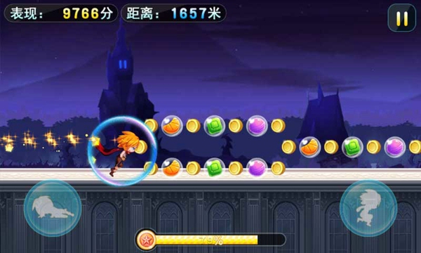《雷霆酷跑》在沿袭传统玩法的基础上,特别加入了加入了变身格斗元素的全新玩法,每个游戏主角都有自己华丽的攻击格斗技能,为玩家带来最为得心应手的跑酷体验。还有漂亮的萌宠等着您喔!随时随地,想玩就玩,抢占排行榜、爱心送不停、高分炫出来!分享你的炫耀,从此变身跑酷达人!