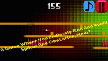 《无尽像素忍者 Endless Pixels》就是那么一款横版障碍穿越游戏,通过点击屏幕的方式上下切换,躲避场景中的深坑与尖刺,若是选择了错误的道路就会掉出场景或者被障碍卡住遭到尾随而至的忍者镖所击杀。游戏的主角是一名身着劲装的忍者,他进入了一个霓虹炫彩的世界之中,而尾随他身后的是四支忍者镖,主角需要不断的向前奔跑才能躲避这四支忍者镖的追击,色彩缤纷的场景如同热闹的舞池一般,在光影中不断的变幻颜色相当的闪眼。值得注意的是本作的游戏音乐可谓是游戏的最大亮点,每一次进入游戏后都会随机播放不同的歌曲,这些歌曲都是节奏强劲动感的舞曲,令人嗨到爆,细数之下听到的就有六首左右有纯音乐的舞曲,也有人声演唱的歌曲,在此音乐的伴奏下,玩家根据节奏不断的上下游走相当的带感。