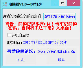 6、程序下载完后请不要修改 电脑锁.exe 的名称!