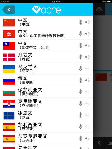 在美国的AppStore中,Vocre支持9种语言。包括英语(美式,英式,澳大利亚式),西班牙语,法语,德语,意大利语,日语,中文,其中美式英语为默认语言。Lauer说他们计划明年会增加一些语言作为支持,大概有40种。