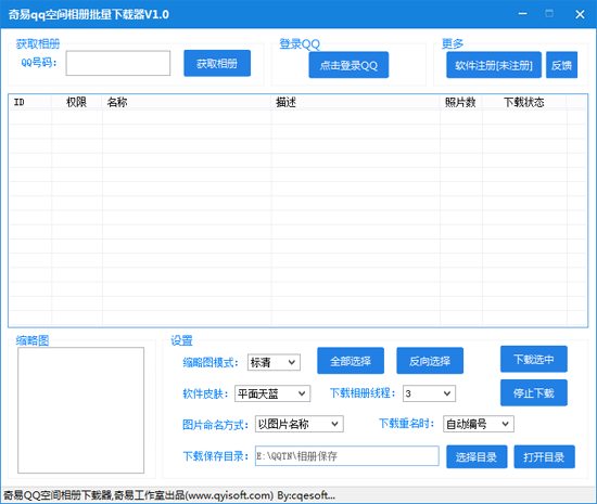 奇易QQ空间相册批量下载器是一款功能强大的QQ空间相册照片批量下载工具,它可以帮助您将自己QQ空间的相册照片或者好友的QQ空间相册照片批量下载下来。方便照片搬家、备份、收藏等,让您从手动下载的痛苦中解脱出来,特别适合下载成百上千张的相册照片。本工具能下载有密码的QQ空间相册照片,但是不是破解密码,是需要输入密码答案后进行的合法下载。【软件特点】