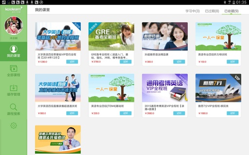 4.移动课堂—与koolearn网课程同步:所有网站上的课程详情介绍,您学习情况,以及您课程表中的每一个知识点均可在移动课堂中查看。(目前仅支持视频,逐步开放其他类型知识点)