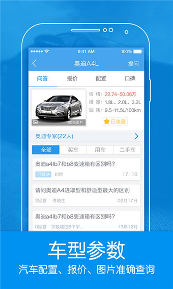 1、全新扁平化设计,更简洁,更美观.2、引入4S店,厂商等行业专家,解答您的问题。
