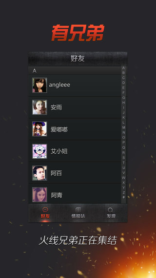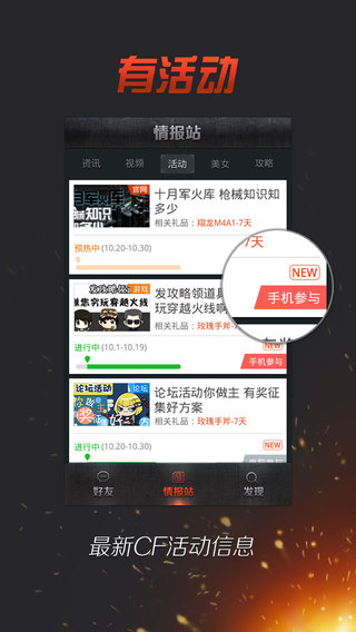1.战友聊天:火线兄弟时刻在线,三五好友随时开战。聊天互动感受全新游戏生活。2.最新资讯:独家猛料、美女八卦、高玩攻略官方首发,轻松成为游戏达人。