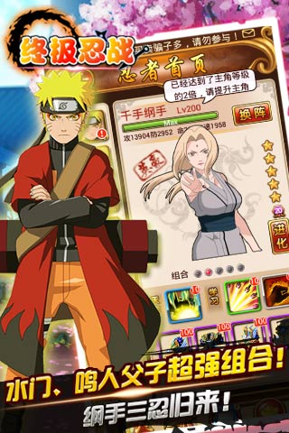 终极忍战安卓版是一款非常好玩的原著动漫改编手游终极版手游,画面精美,内容丰富,引人深入让你玩一下就想一直玩的游戏。游戏讲的是鸣人实现最终梦想,梦幻火影尽在终极忍战爆发!联合各村忍者的第四次忍界大战已如火如荼展开,著名动漫火影将近尾声。《终极忍战》横空出世,同步原著剧情,真实还原忍者伙伴们之间的羁绊。佐助会否完成鼬的遗愿守护木叶村,小樱情归何处,鸣人能否加冕第六代火影,由玩家来决定!