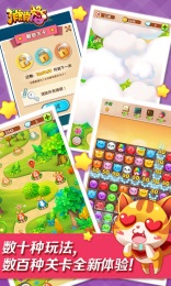 消消宠是一款宇宙超人气三消休闲游戏!电脑版玩家超过两千万!手机版强势登陆,特效华丽,好玩根本停不下来!顺着童话般的森林去闯荡,消灭一个又一个富有挑战的关卡障碍,记得别踩白块儿,享受各种精美关卡带来的消除体验!