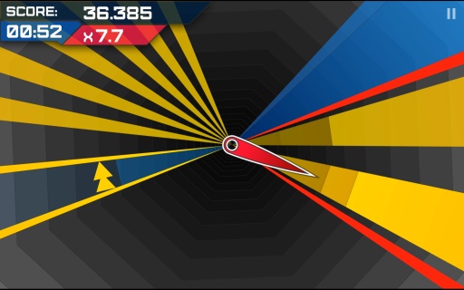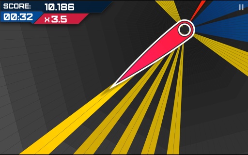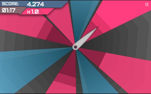 操作也很简单:左右两个按钮控制指针顺时针或逆时针旋转即可。但是指针在经过变换的色块时,需要作出的变速运动也是不同的,这一点需要游戏一开始的教学去体会。