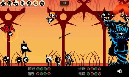 游戏包括:前进,进攻,防守和撤退四个方面;玩家可以按照这这些顺序敲出的响声可以控制角色进行战斗。