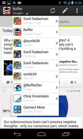 使用 Buffer 分享内容到 Facebook 和 Twitter for Android,您将获得最佳的分享效果。与传统新闻应用和社交分享应用不同,Buffer 为您带来 Twitter 数据分析和 Facebook 洞察,您可以了解与点击、转推、打“赞”、评论以及更多相关信息。此外,我们还能为您的推文和更新排程,选择最适合您的时间发送。
