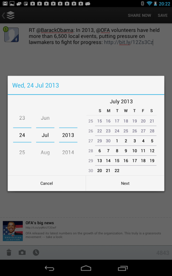当您阅读一篇文章时,使用 Android 的分享菜单并选择“添加到 Buffer”即可发表相关内容到 Facebook 和 Twitter for Android。它同样支持大量免费 Twitter 应用中的转推功能。最受欢迎且完美支持 Buffer 的免费 Twitter 应用有:
