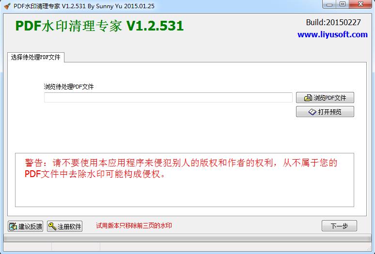 1、运行执行程序 PDFWatermarkRemover.exe2、选中待处理pdf文件,点击下一步