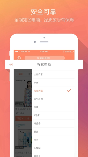 袋鼠店是帮助人人“无货开店”的免费手机应用,商品来自全网各大电商平台,你有你的高富帅,我有我的屌丝店。