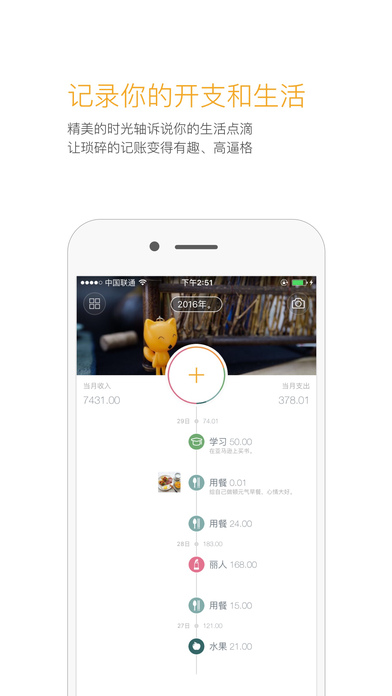 新鲜、高品质的记账应用。超多惊喜体验。独创时间轴记账法,告别复杂和枯燥,记下你钱包鼓鼓的时光。