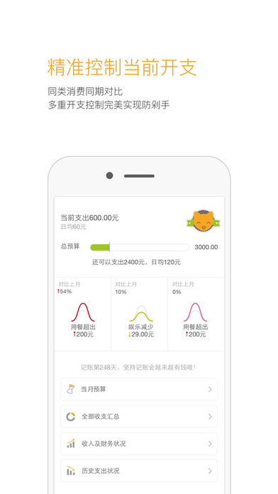 【功能强大】支持多账本,云备份,智能类目,去向统计等丰富功能;【告别难用】账单流水自然流畅,账目组织更简单、清晰,告别枯燥表格;