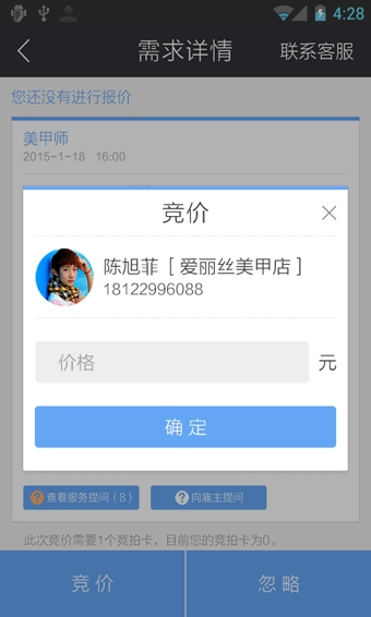 竞价功能:24小时内,服务商会根据您的服务要求提出带有竞争力的报价。