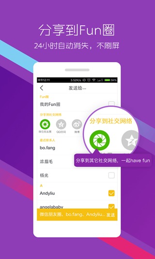 Fun圈特有的24小时动态轮播,发再多照片/短视频,也不用担心刷屏(被好友拉黑)啦。
