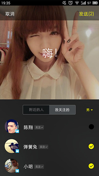 - 一键拍照并发送给附近的人,直播你当下的生活,看看有没有人回应你- 添加附近的人为关注,和他们一对一聊天