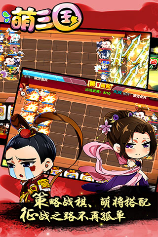 【排兵布阵施展最强计 策略为先杀敌致胜】谈笑间樯橹灰飞烟灭,策略令无数人痴迷三国。相对于传统无脑式砍杀的三国手游,《萌三国》独创的全新网格战斗模式,让人在九宫格的战场中体验淋漓尽致的策略强悍。在战斗中,玩家可以在9×5网格阵型中,以拖动方式自由调整武将实现对战。配合全新的智能主将组合,让玩家可以轻松激活和释放更多丰富技能,自由指挥武将的行动方式,让战场更加容易掌控,运用最佳策略一举颠覆战场!
