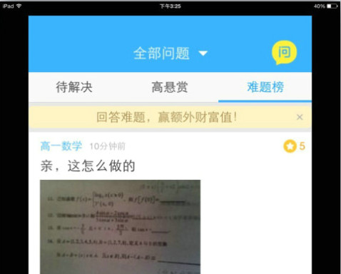 还在为作业的难题烦恼,作业帮来帮你忙,作业帮充分利用移动端优势,拍照即可即可免费提问,轻轻松松一步搞定!同时作业帮还提供分享功能,自己不会做,别人来帮忙。充分利用了互联网的优势资源,快速高效的解决问题,让你轻松学会掌握这门知识,用不了多久,你就会考试加分,当上小组长,出任班干部,带上小红花,想想还有点小激动哈!分享社区中包含待解决,高悬赏,难题榜。你可以学习到很多未曾接触到的题型,你也可以教会别人不懂的问题,相互帮助,相互成长。