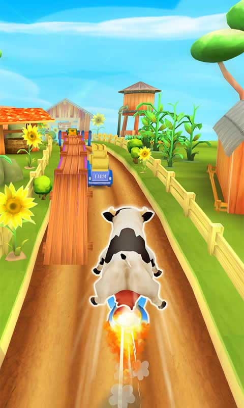 游戏刚开始,只有一只毛快掉光的公鸡,顶着一个大红鸡冠奋力狂奔,刚开始还觉得它傻乎乎的跑步姿势让人忍不住想笑,可是玩久了之后,不免有些视觉疲劳,难道这硕大的农场只有公鸡这一种动物吗?当然不是,农场里呀,有着小牛、小猪、小马等丰富的小动物们,只是它们还被关在农场里,需要你过关斩将,通关获取一定解锁条件之后,才能一一开启它们,一般游戏只需花费金币就能解锁角色,而本作解锁条件却略为复杂,具有难度的解锁条件,为游戏增添了不少乐趣。