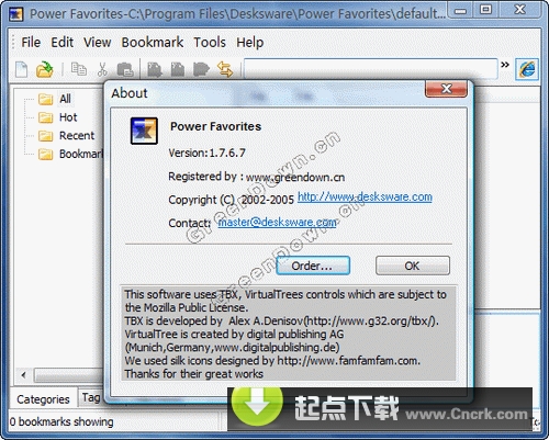 DesksWare Power Favorites V1.767 英文绿色特别版 Power Favorites 是一款书签管理软件,帮助你管理和同步你的书签。它能从ie,firefox,opera 中获取书签,合并为一个文件,自动在不同的计算机之间同步