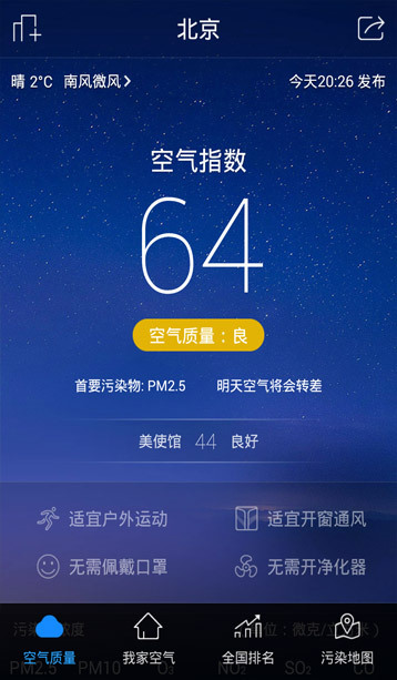 每日播报空气质量指数,同时给您贴心的污染防护建议